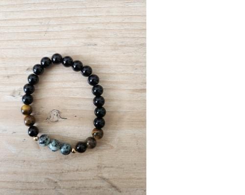 Ce bracelet en Œil du Tigre Jaune et Onyx Noir Africain procure de la puissance d'action, de la haute protection et fortifie votre champ aurique.